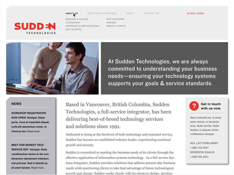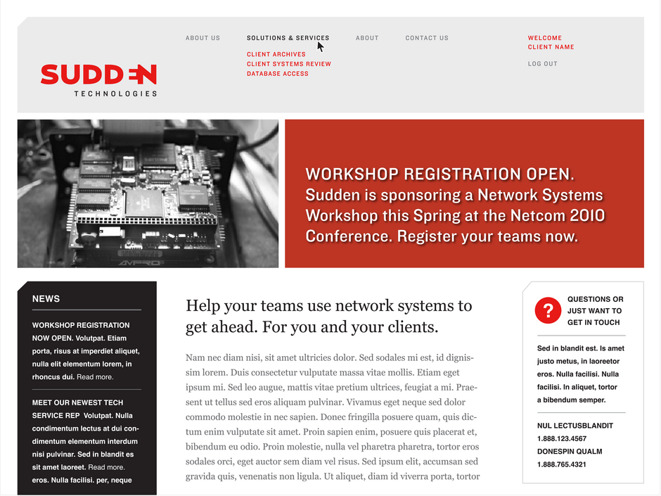 Sudden Technologies is a full-service systems integrator with innovative technology services, solutions & technical expertise. They take pride in providing solutions that take the complexity out of the technology, linking business goals with desired outcomes, and connecting systems via knowledgable and skilled personnel. The brand redesign made way for a new color palette, simplified company name and a bold graphic mark that speaks to strategic partnerships, connections and networking with confidence and stability.